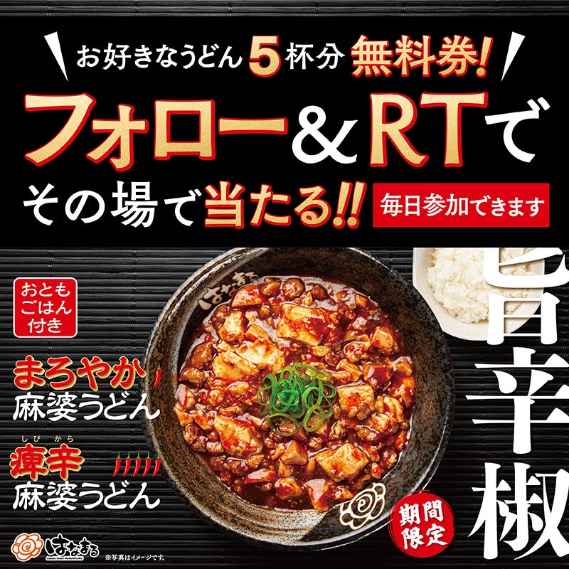 まろやか&痺辛 麻婆うどん新発売記念「はなまるTwitter(X)フォロー&RT(リポスト)キャンペーン」 |