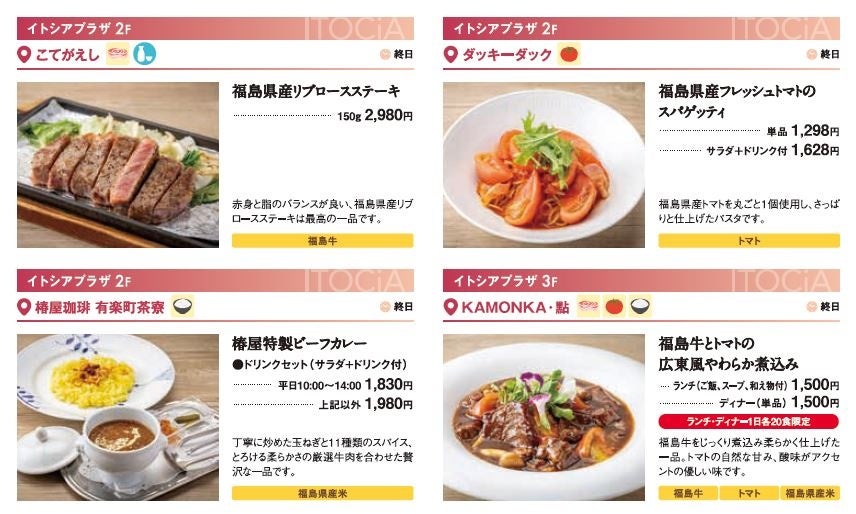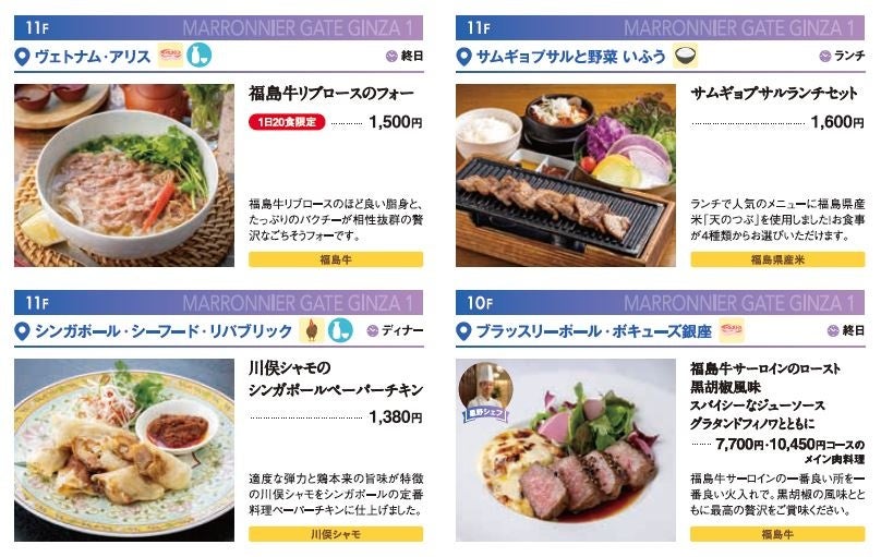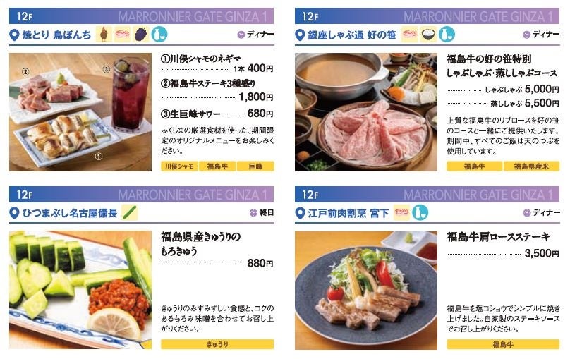 マロニエゲート銀座1と有楽町イトシアが、食の宝庫として知られる福島県の食材を使った期間限定メニューをご用意しました。