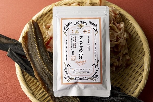 アコメヤが原料の選定からこだわり抜いた「アコメヤの出汁」。焼きあご出汁・かつお出汁・煮干し出汁・野菜出汁・鶏節出汁、そして今回新発売のさけ出汁の6種類が、毎日の食卓をしあわせで彩ります。 良質な国産原料を厳選し、そのまま飲んでも美味しい味であることにこだわった「アコメヤの出汁」。ご家庭でも簡単に、ほんものの味をお楽しみいただけます。