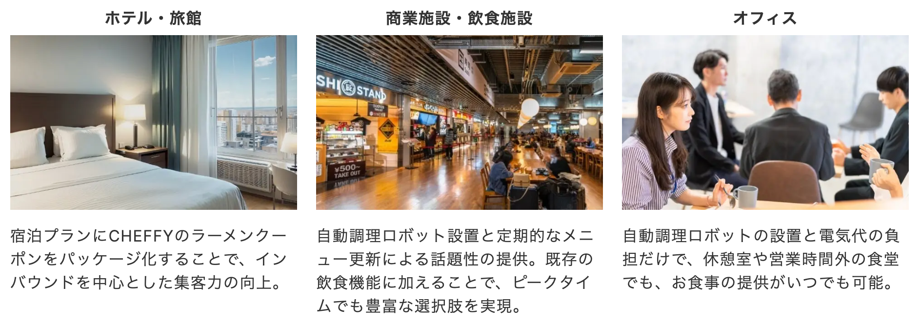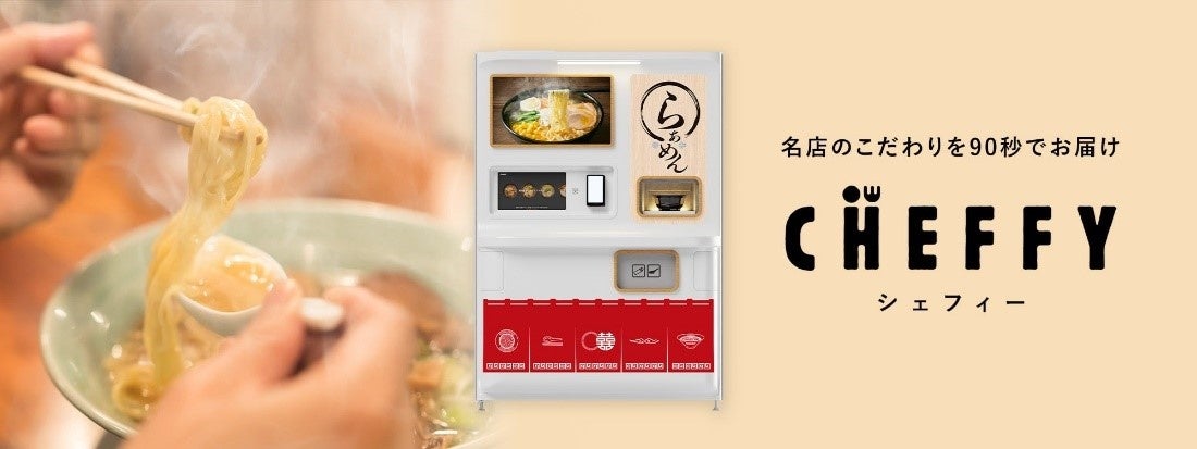 「CHEFFY」は、他の自動調理ソリューションでは実現できない、みずみずしく、熱々のラーメンを最速90秒で自動調理できるロボットです。この特性を生かし、世界中で高く評価されている日本の名店のラーメンを全国※1の宿泊施設、商業施設、飲食店、オフィスなどで提供できるようになりました。日本を代表する有名ラーメン店に参画いただき、ラーメンお取り寄せサイト「宅麺.com」を運営するグルメイノベーション株式会社(本社:東京都渋谷区、代表取締役社長:井上 琢磨)の全面協力のもと、”こだわりの一杯”を開発しました。