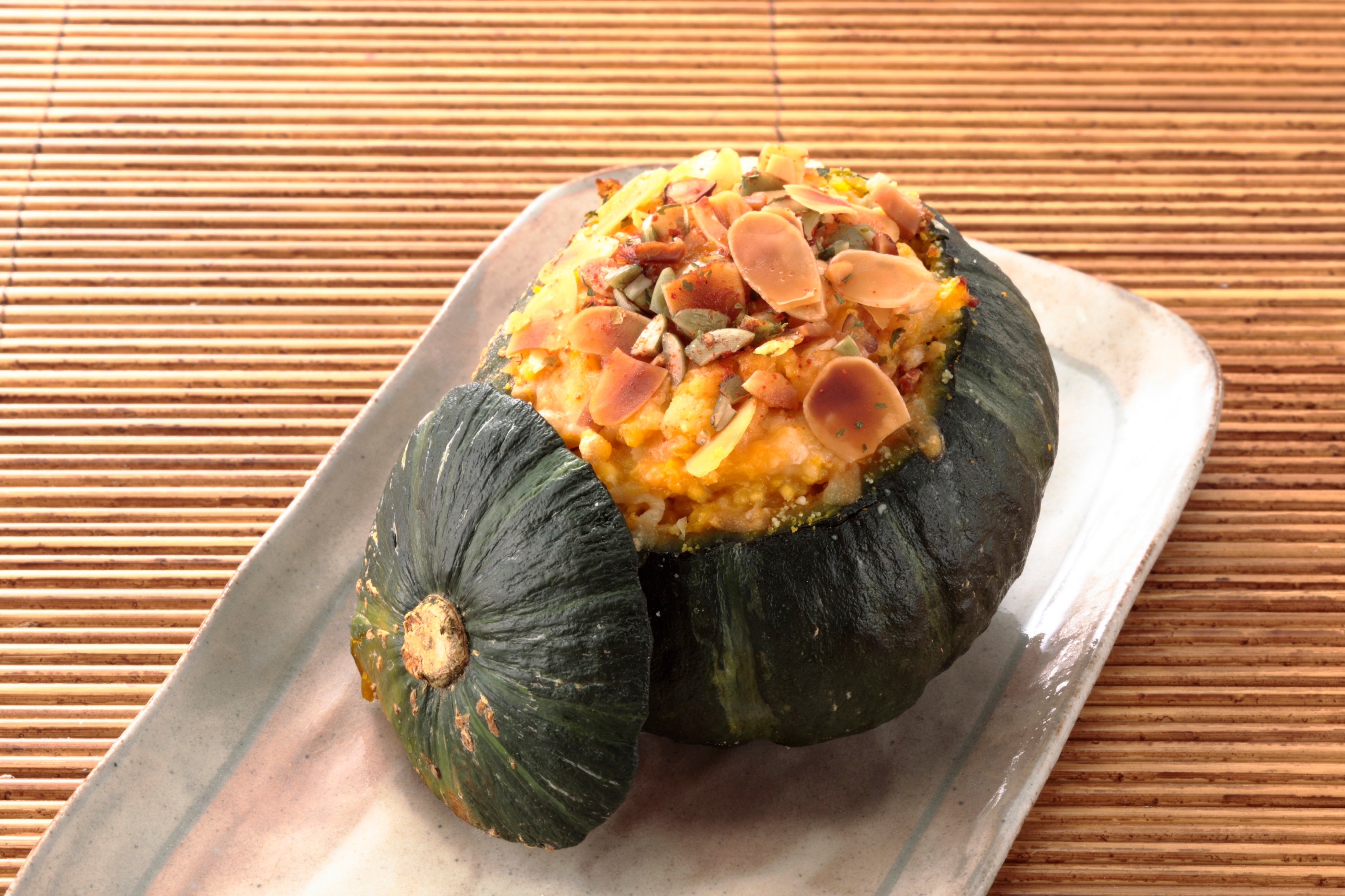 7月にオープンした新ショップ。中はかぼちゃアーモンド・玉ねぎなどがゴロゴロ、皮の器ごと味わえます。