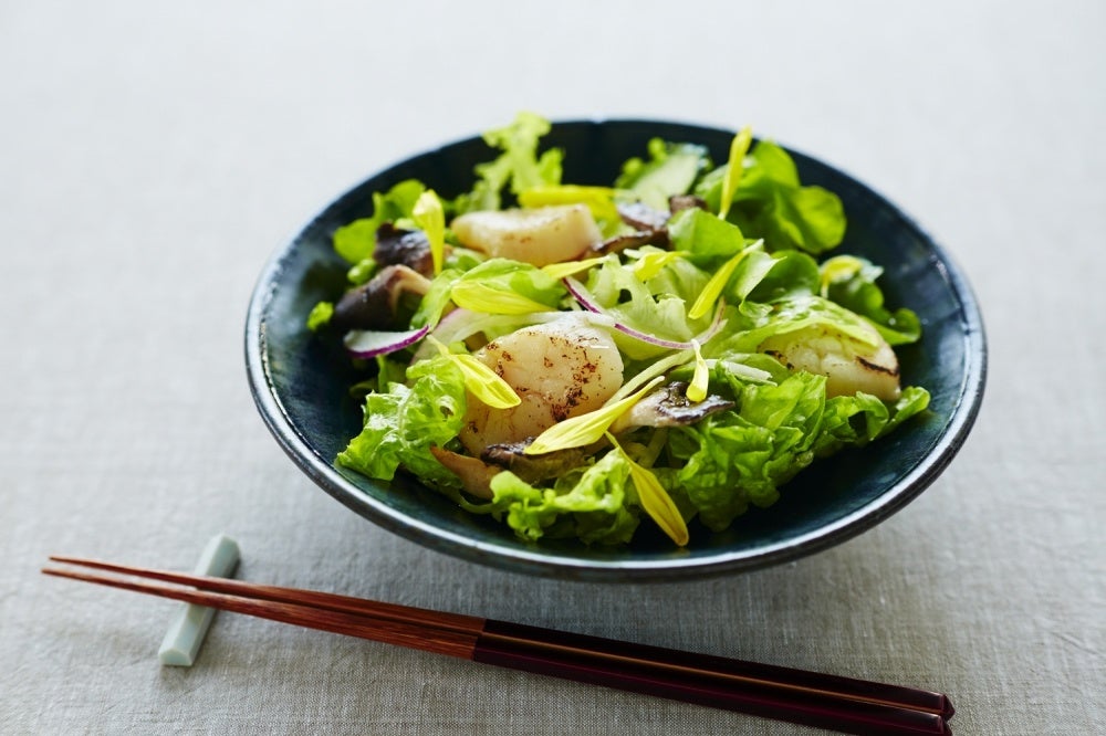 だいだい果汁入りのさっぱり淡口醤油ドレッシングが帆立やひらたけと相性抜群。