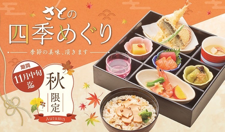 国内197店舗を展開する「和食さと」では、秋の訪れを感じる旬の食材「松茸」や「秋刀魚」、「ノルウェーサーモン」などを使用した季節限定のフェアメニューを9月7日(木)から販売します。