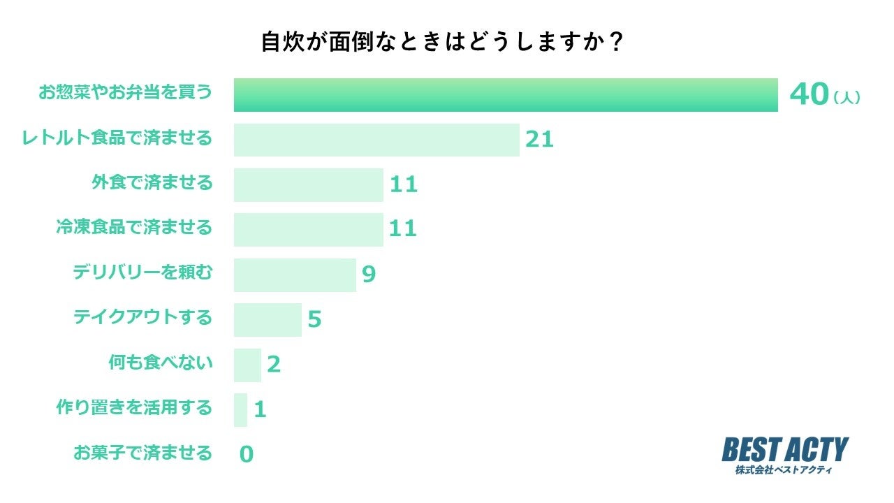 アンケートの結果、「お惣菜やお弁当を買う」と答える人が最も多い結果となりました。