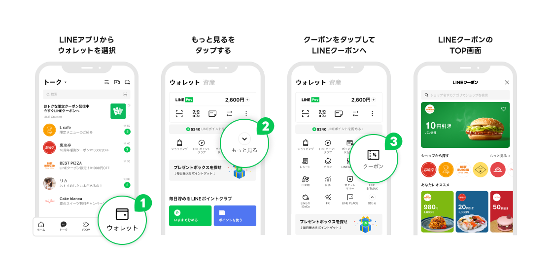 「LINEクーポン」は、国内9,500万人※1が利用する「LINE」アプリ内の「ウォレット」タブやLINE公式アカウントからアクセスして最新の各種クーポンを手軽に検索・利用できるサービスです。飲食店やスーパーマーケット、薬局などをはじめとした、日々の生活シーンで使いやすい様々なクーポンを提供しています。