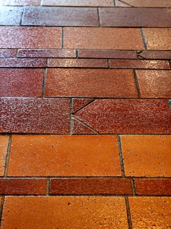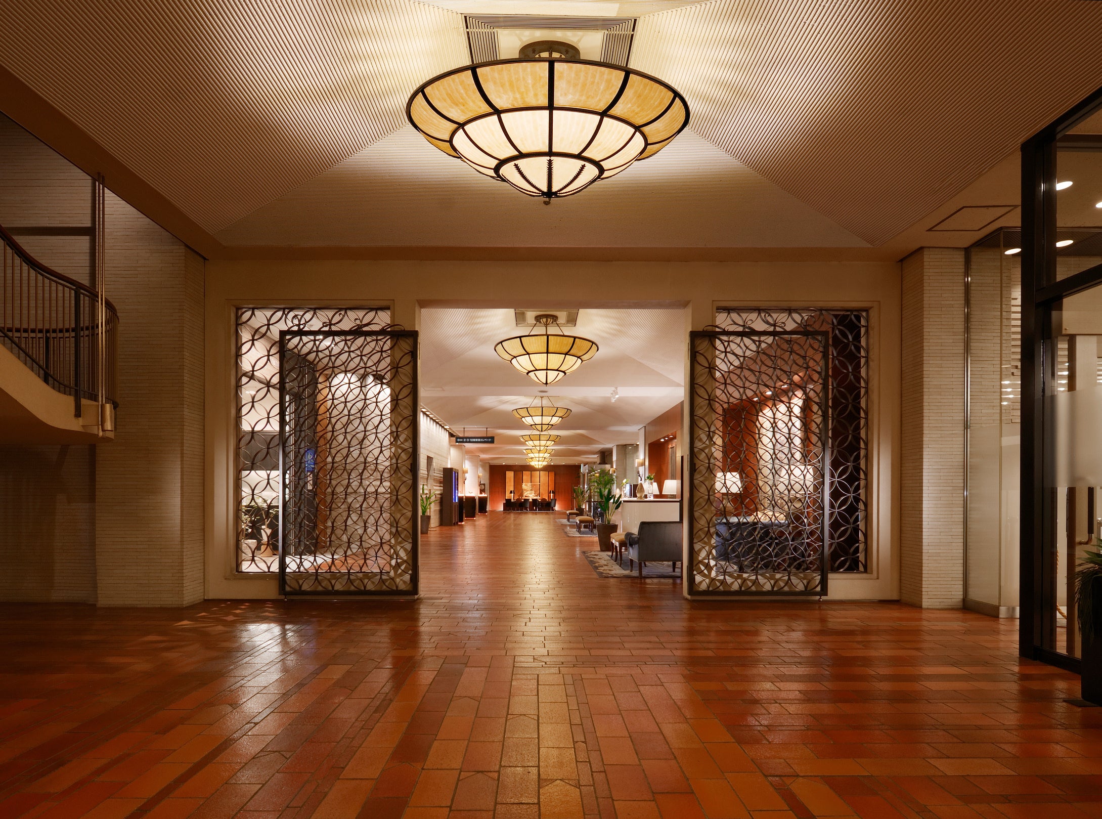 常滑焼と瀬戸焼を組み合わせて作りあげたロビーの床タイルには、名古屋観光ホテルの「K」の文字が