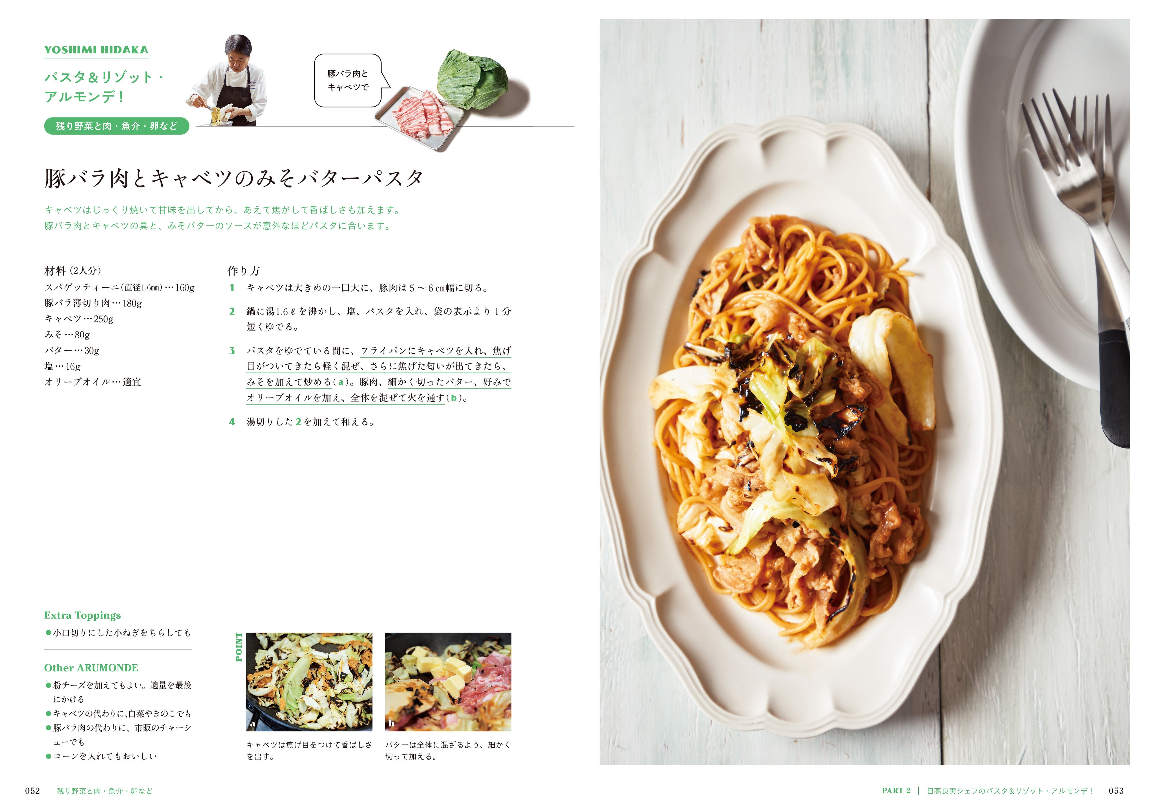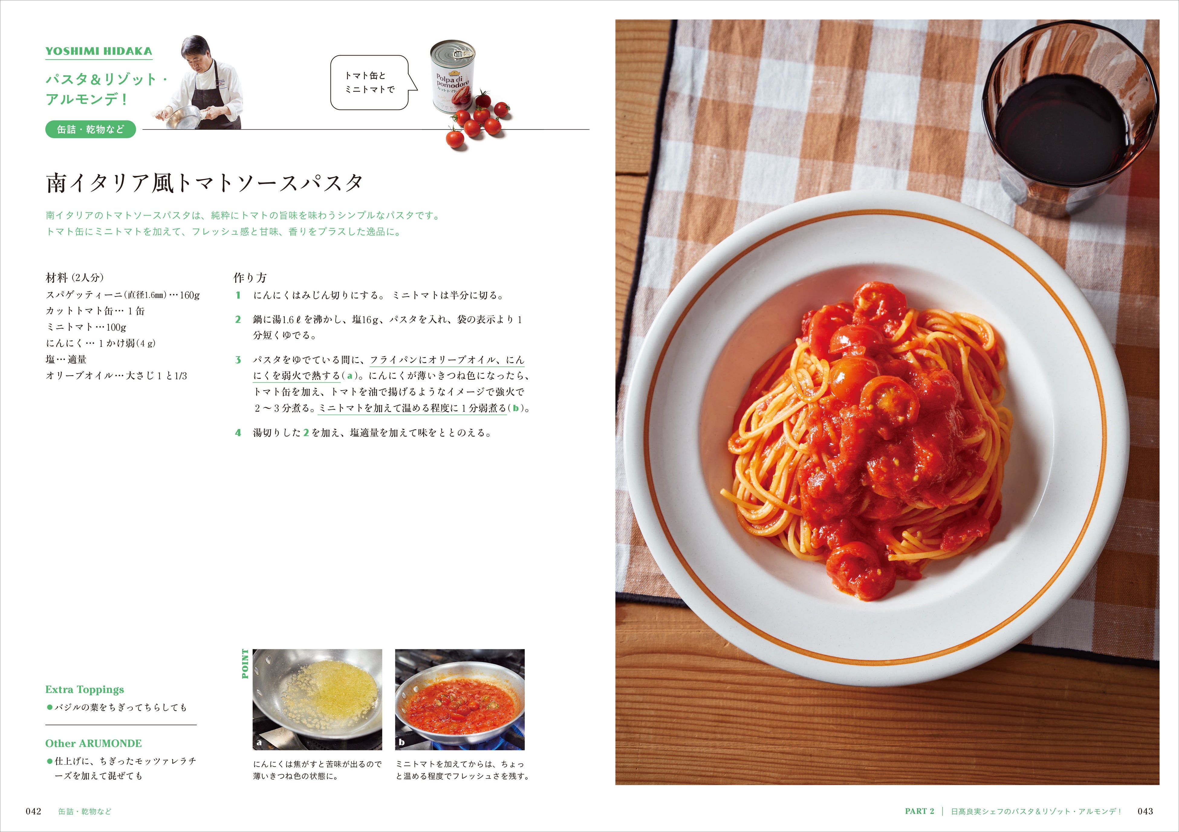 PART 2では、リストランテ アクアパッツァ・オーナーシェフの日髙良実さんに教わる「家にアルモンデ! 絶品イタリアン」。ベーコンやソーセージなどの肉加工品、オイルサーディンやツナ缶などの缶詰、残った野菜など、おうちにあるものを組み合わせて作れる20品の本格的なパスタ料理とリゾットの作り方を紹介します。