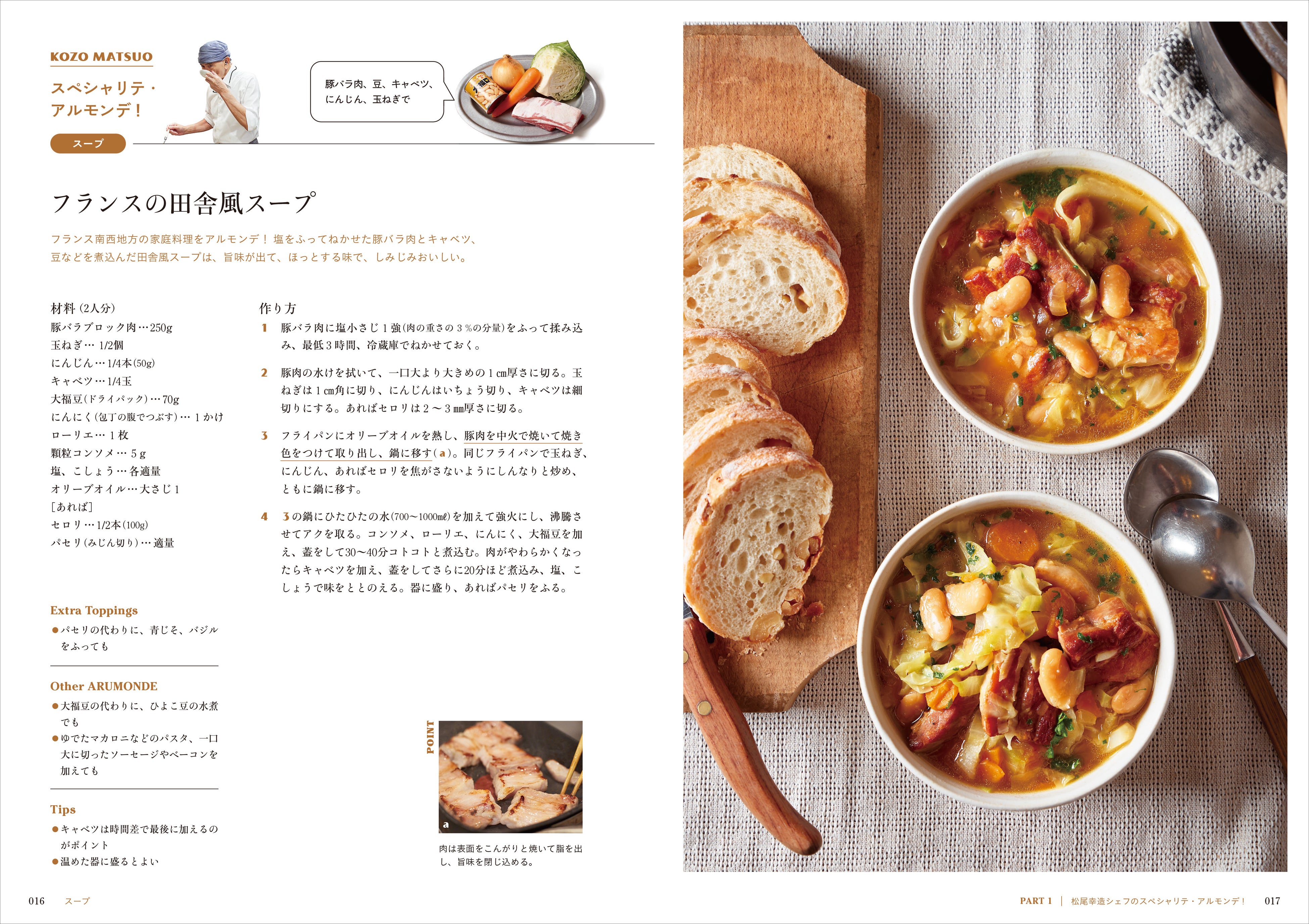 PART 1では、シェ松尾・元オーナーシェフの松尾幸造さんに教わる「家にアルモンデ! フレンチフルコース」をご紹介。調味料やハーブなどを常備して、本書を参考にすれば、普段、家にあるような食材を使ってシンプルな工程でお店並みの料理が作れます。