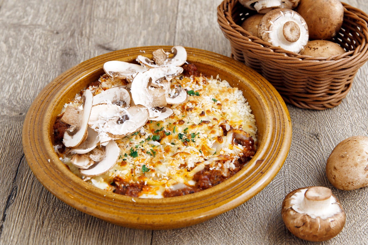 ◆じっくり煮込んだ淡路牛と六甲シャンピニオンとのボロネーゼ チーズフォンデュソースがけ(淡路牛50%使用)
