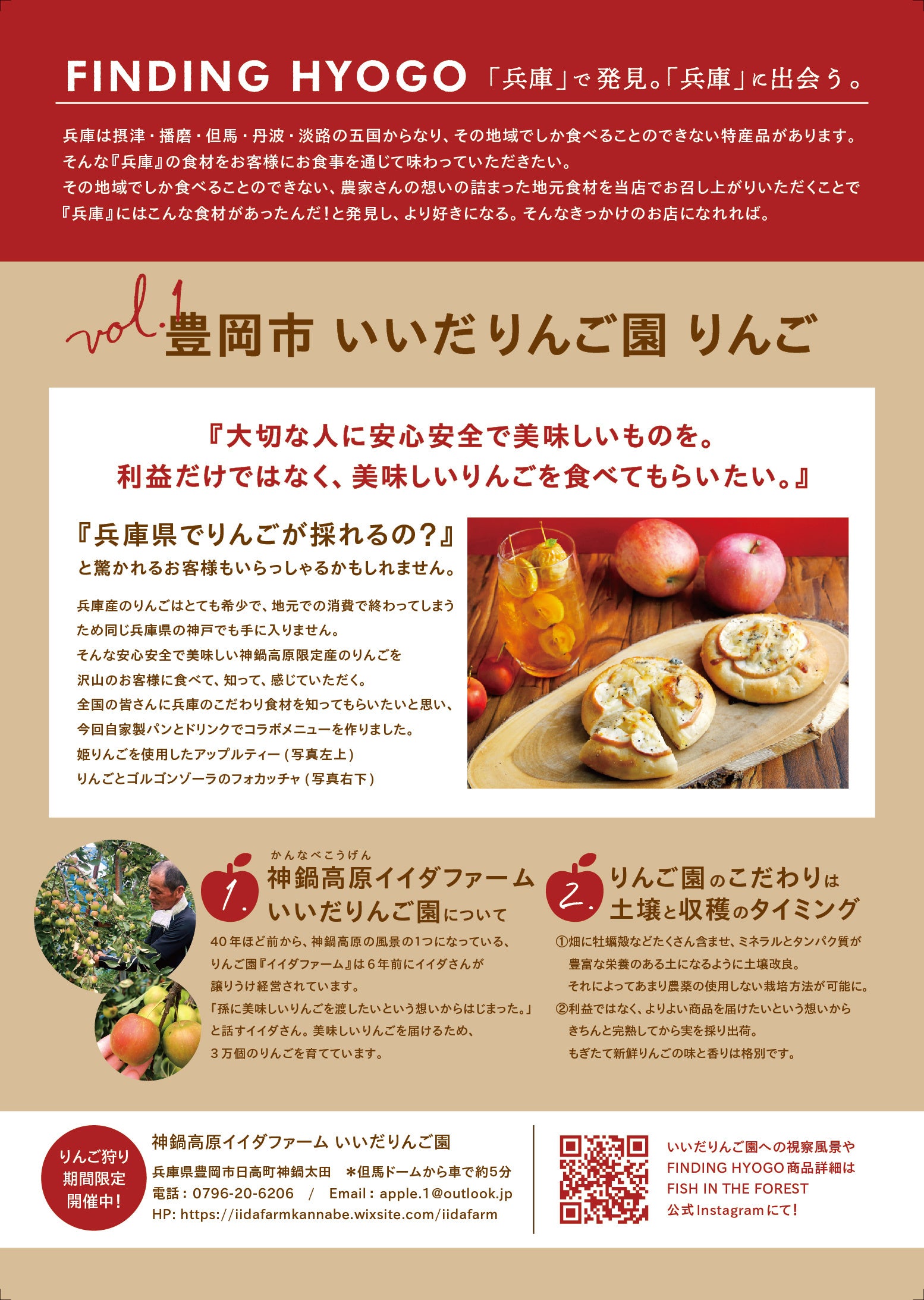 今回「FISH IN THE FOREST」では、摂津・但馬・淡路のそれぞれの地域で収穫された農家の方々の想いが詰まった地元食材を使ったメニューをご用意いたしました。