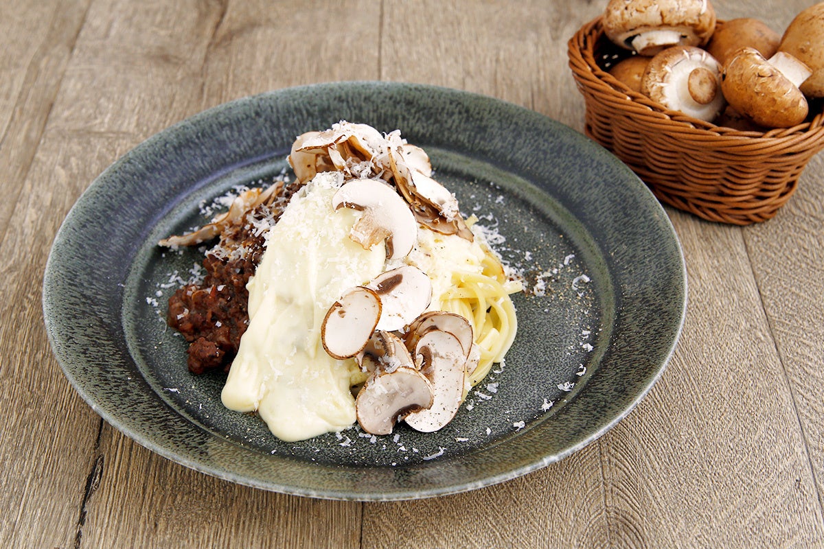 人気の淡路牛ボロネーゼに、六甲シャンピニオンをトッピング。