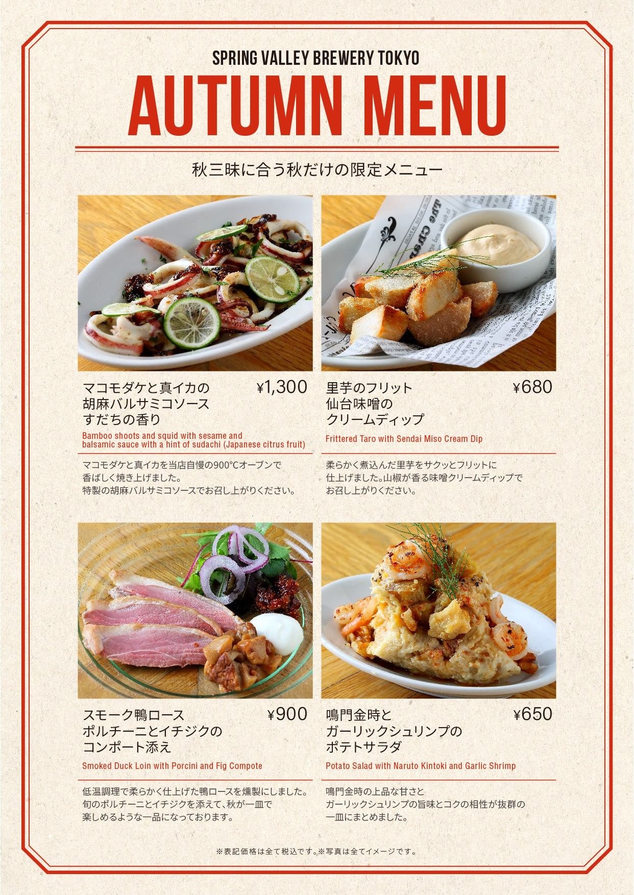 またSVB東京のシェフが、この「秋三昧」に合わせて期間限定のオススメフードメニューもご用意いたしました。是非秋の味わい深まる特別な季節に「秋三昧」を堪能ください。