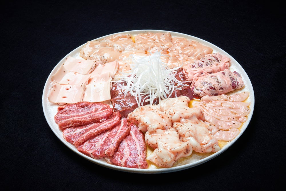 ブランド和牛【鹿児島黒牛】の内蔵各部位(大腸・小腸・ほほ肉・肝臓)と産直豚の内臓希少部位盛り合わせになります。牛の達人の並々ならぬ鮮度へのこだわりが感じられる逸品。こちらの盛り合わせは焼き師が各部位を焼き上げますので、ベストな状態でホルモンの魅力をご堪能いただけます。