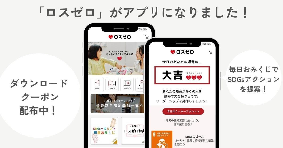 ロスゼロの商品を購入できるだけでなく、「毎日おみくじ」などで遊びながらSDGsに取り組めるコンテンツも充実。読み物でちょっとした知識も学ぶことができるロスゼロの公式アプリ。