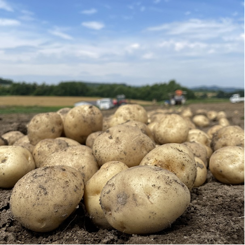 コロッケに合う味わいとホクホク感を追い求め全国を探し回り、端野町の男爵いもに出会ったのは1990年のこと。「良質で美味しい野菜を作りたい」という端野町生産者の熱意と、「生産者の顔が見える素材を使用し、おいしさと安心・安全を追求したい」という神戸コロッケの思いが合致し、以来、思いをひとつにして30年以上をともに歩んできました。