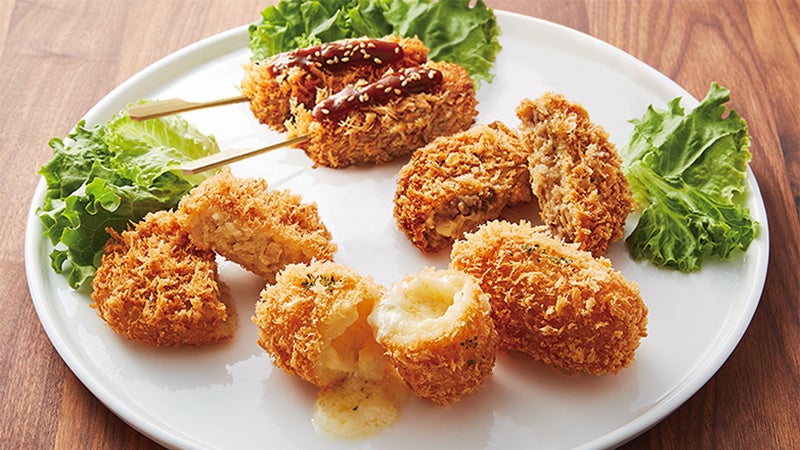 内容:新じゃがのとろけるバターコロッケ×2、シンプルなじゃがいもコロッケ×1、黒毛和牛のビーフコロッケ×1、でら旨 味噌カツ串×2