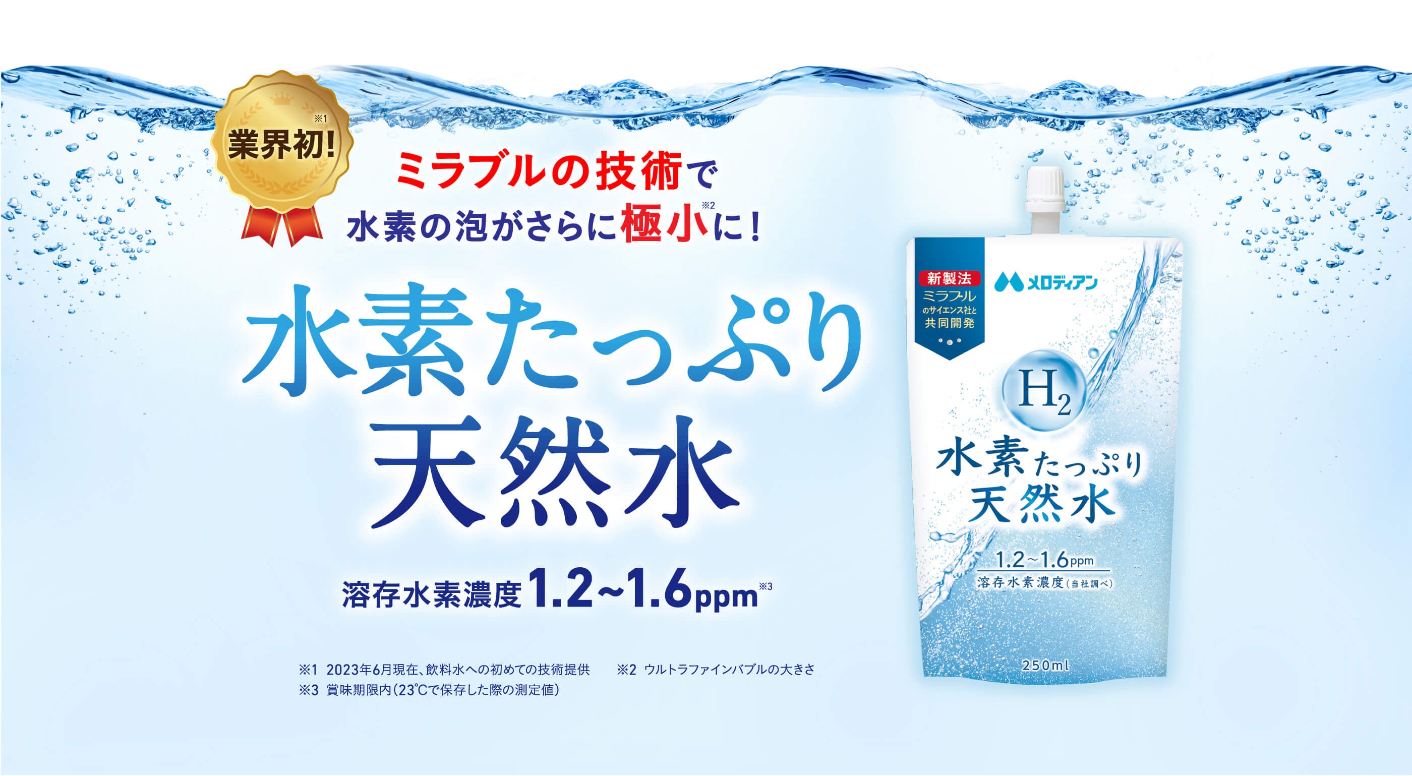 ※「マイクロナノバブル製法」は従来採用しているメロディアンの水素水製造方法です。