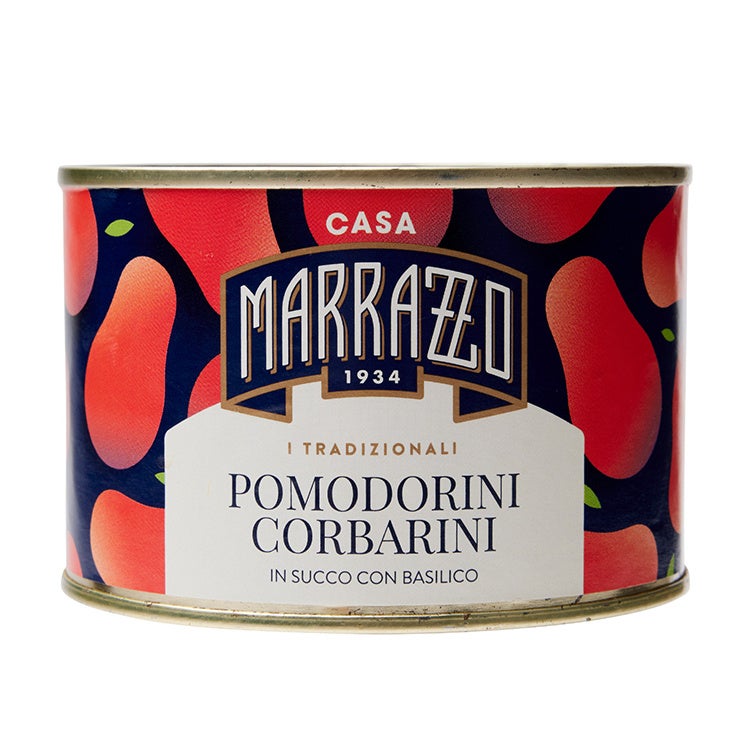 南イタリアの太陽の光で熟し、甘酸っぱい風味がひろがるチェリートマトを収穫後すぐに加工し、新鮮なバジルと濃厚なトマトジュースと一緒に漬け込みました。ホールのトマトがそのまま形をのこしたまま味わえるので、パスタやピザはもちろん、フレッシュチーズのモツァレラやブラータと合わせてオリーブオイル、バジルをちらせば、手軽で確実においしい前菜に。