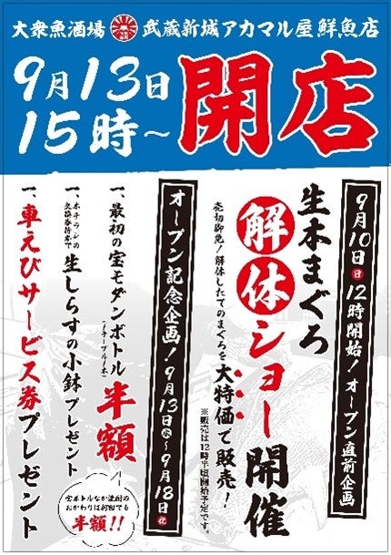 オープン記念イベントとして、生本まぐろの解体ショー&即売会を開催いたします。
