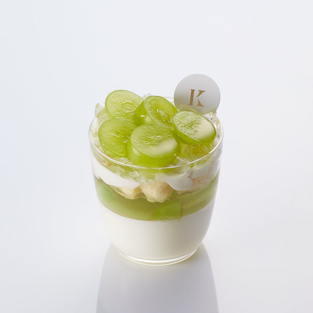 シャインマスカットの果肉を入れたジュレを、ふんわり軽い食感のレアチーズムースにのせ、