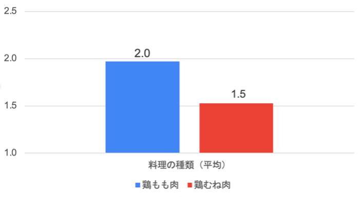 設問3と設問4における回答数から、鶏もも肉の方が鶏むね肉より多くの種類の料理がつくられていることが示唆された。