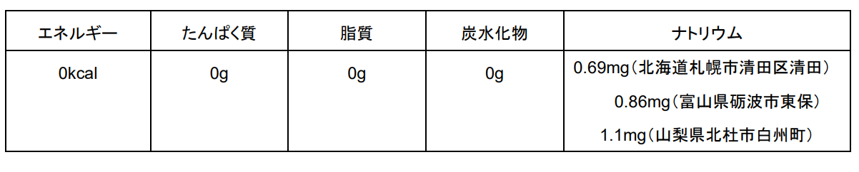 原材料名 :炭酸、カラメル色素、酸味料、甘味料(スクラロース、アセスルファムK)、香料