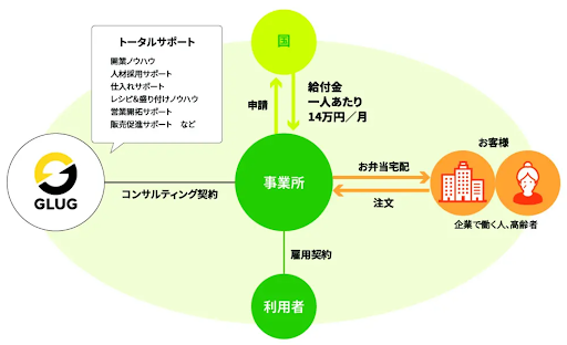今回わたしたち株式会社GLUGがリリースした、はぐフードは、貴社の既存の飲食店に相性の良い就労継続支援A型事業を組み合わせる収益継続型(ストック型)ビジネスモデルです。