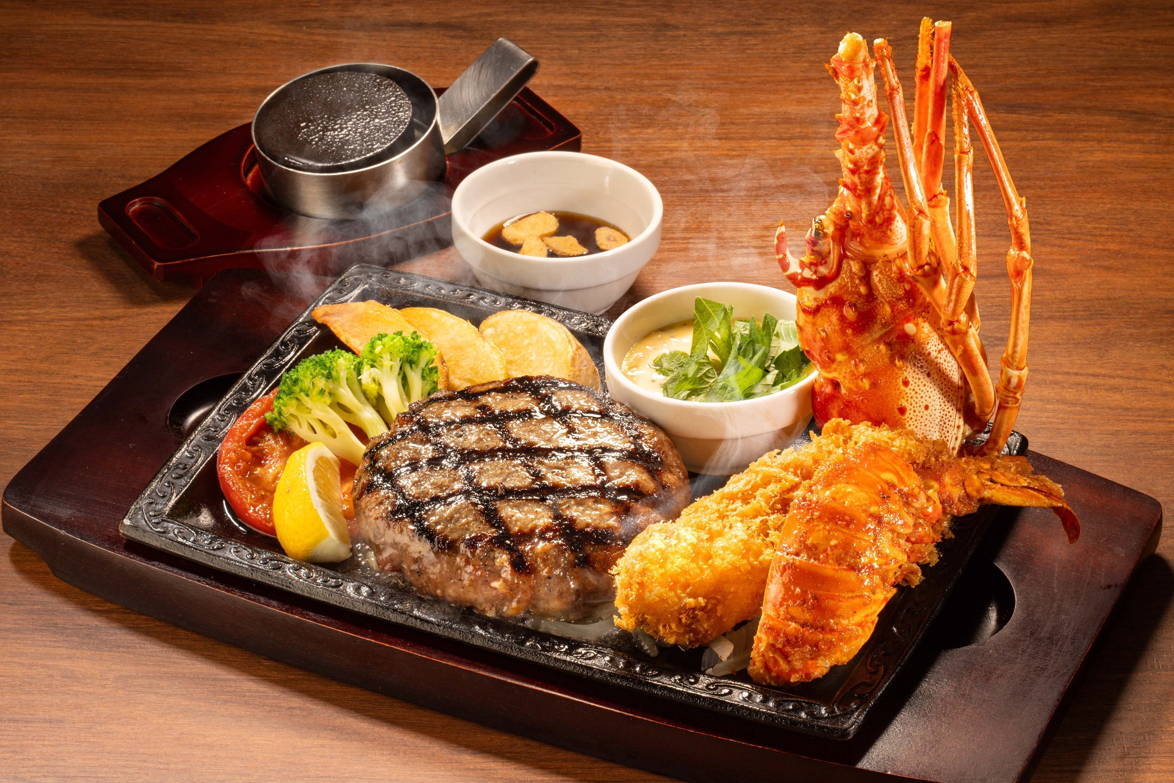 4種のスパイスを独自配合し、つなぎ不使用で肉本来の旨味・ジューシー感を楽しめる、食べ応え抜群のステーキバーグと、プリップリの伊勢海老を一緒に楽しめる贅沢な一品。