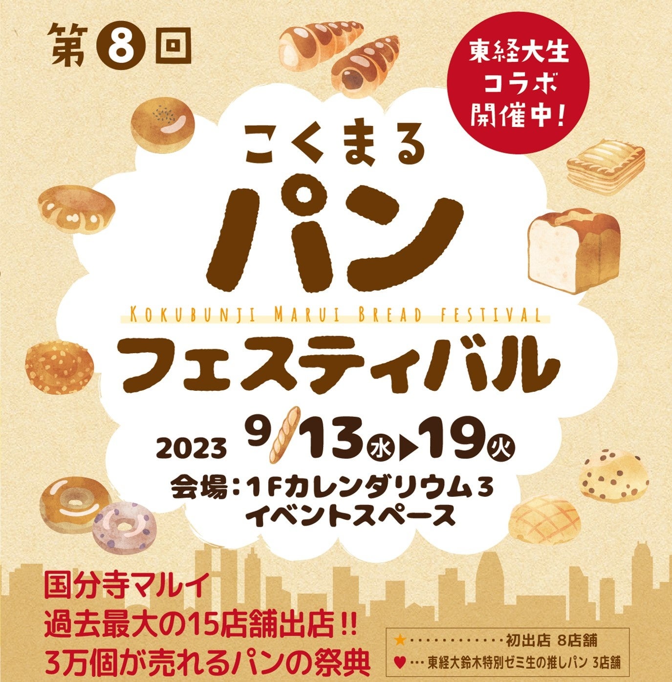 地域の大学で人気のパン屋さんと学生のコラボパンや学生のおすすめパン、さらに、国分寺マルイ初出店のパン屋さんからの逸品も大集合。マルシェの様に買い回りをお楽しみください!