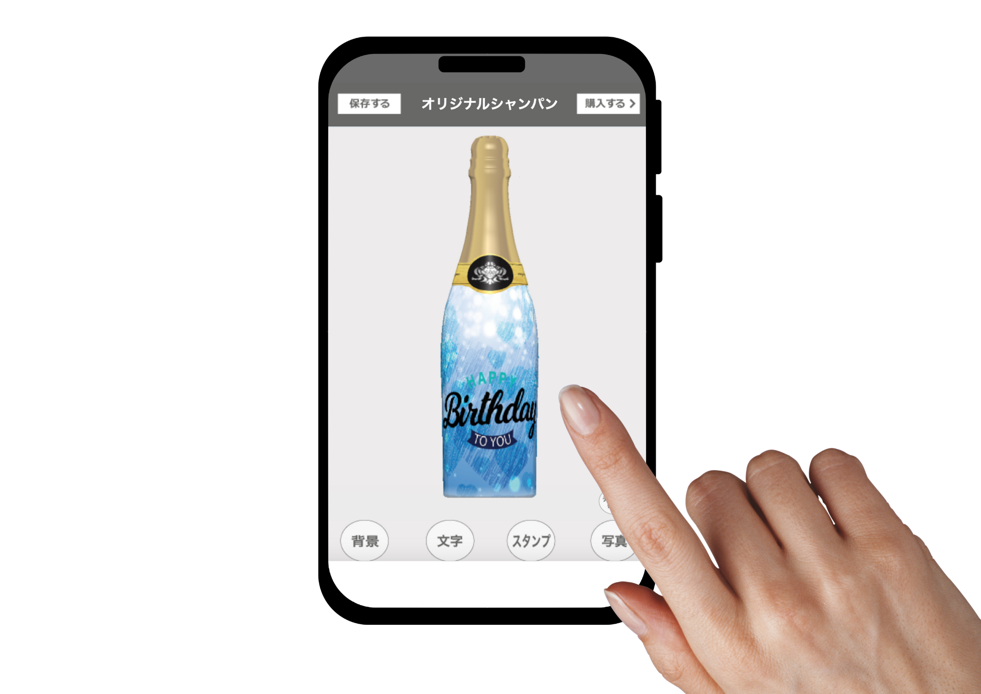 そこで、スマホからシャンパンボトルを簡単にデザイン出来て、すぐに贈れるシミュレーターサービスを開発いたしました。