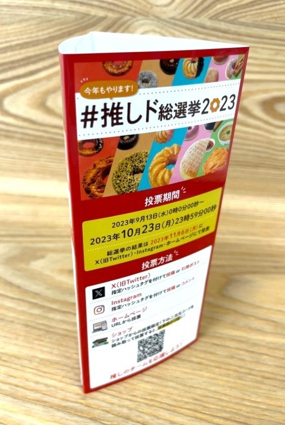 ミスタードーナツの、ショップに設置のツールに記載の二次元コードから遷移できる専用サイトからの投票は、投票ポイントが2倍になります。ぜひショップで商品を楽しみながら投票してください。