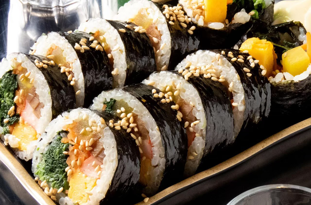 手作りナムルに韓国の味付けごぼうやダンムジ(たくあん)等を巻いた大人気のキンパです!
