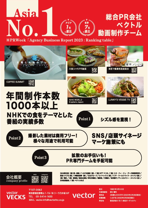 年間制作本数1,000本以上、国内最大手の総合PR会社ベクトルグループの「VECKS」だから出来る、作って終わりじゃない動画をご提案します。