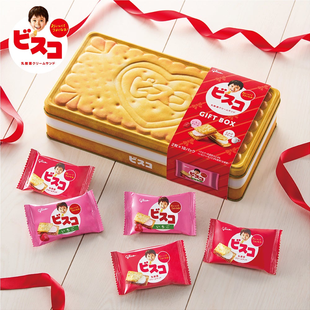 「ビスコ」は、生きて腸に届く乳酸菌、食物繊維、カルシウム、ビタミン B1・B2・Dを含む、おいしくて体にうれしい乳酸菌クリームサンドです。小さな子どもから大人まで食べ慣れたあっさりとした甘さで、90年間、子どもたちのすこやかな成長を応援し続けています。そして、「ビスコ」は小箱に加え、オールシーズンの手土産や食べた後の小物入れとしても人気な「ビスコGIFTBOX」など、家族みんなで楽しめる商品も展開をしています。