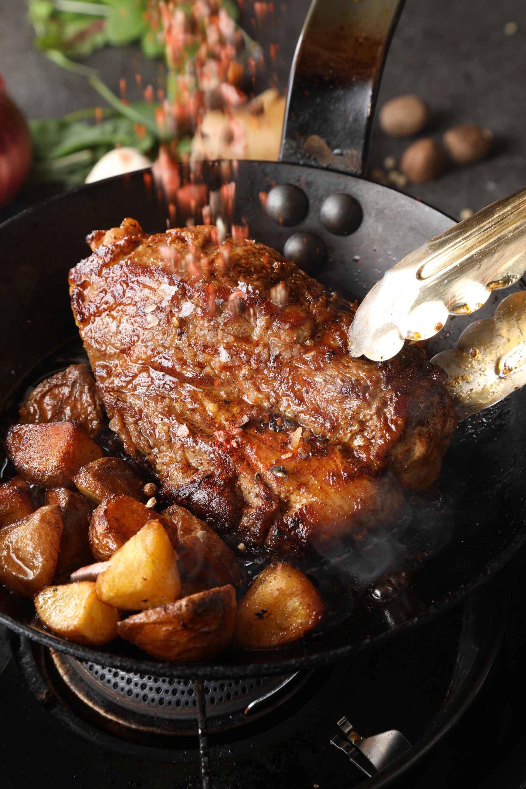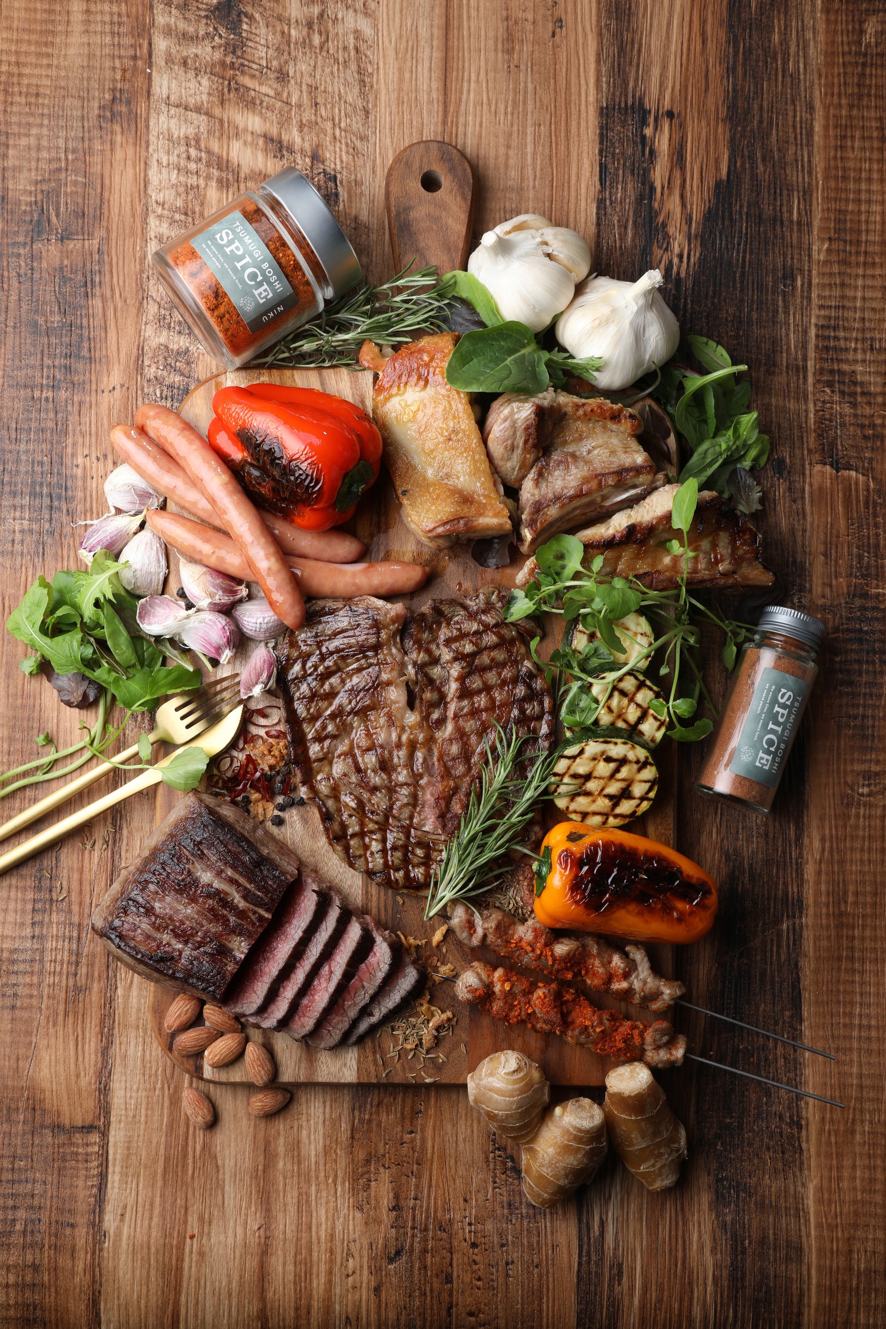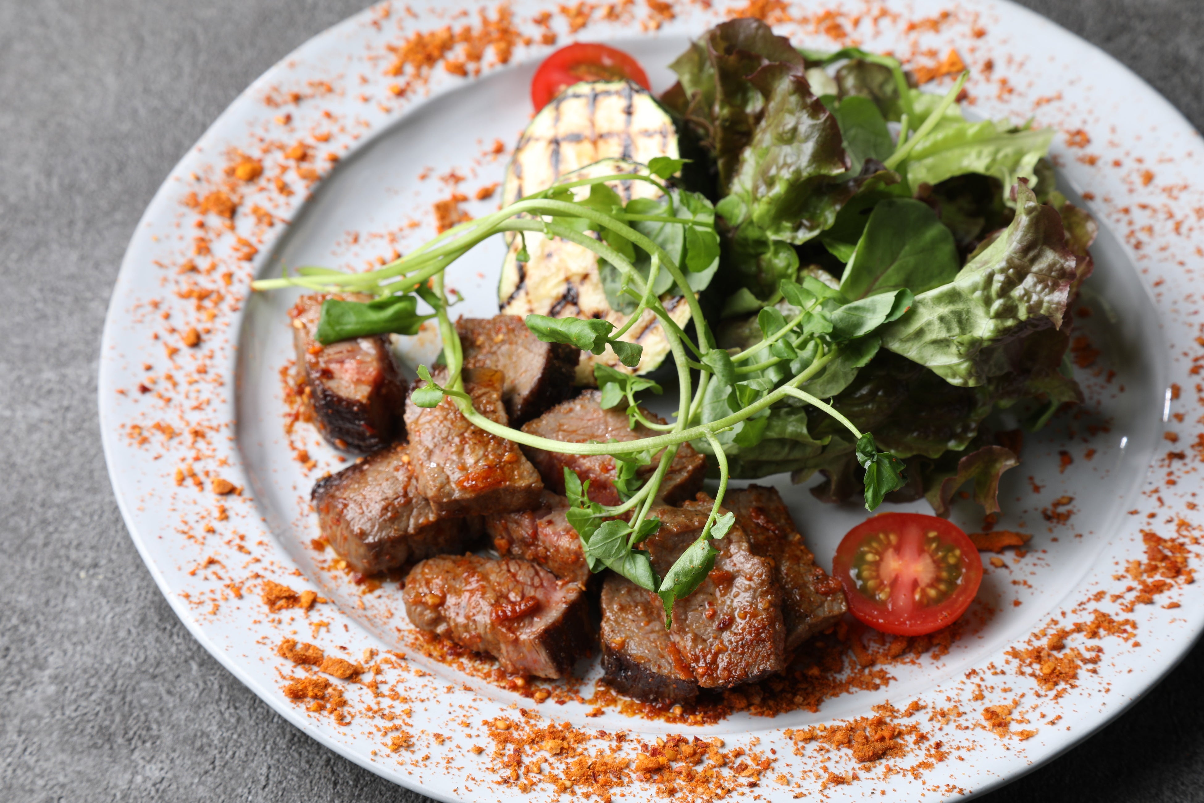 お皿の周りに振りかけたツムギボシスパイスをお好みでつけながらお肉を愉しめます。