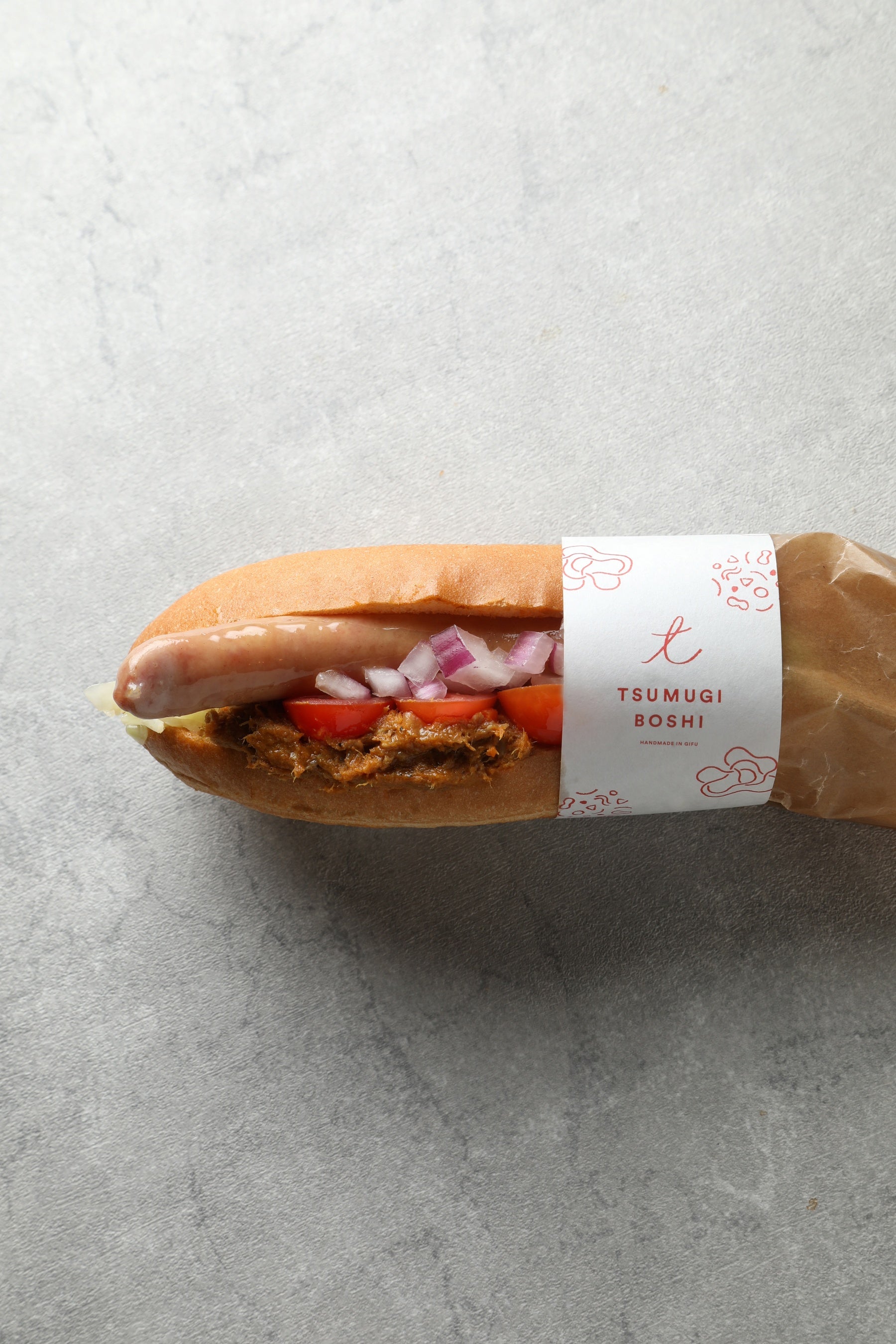 トマトとツムギボシスパイスで作るソースが決め手のスパイシーなホットドッグ800円(税込み880円)