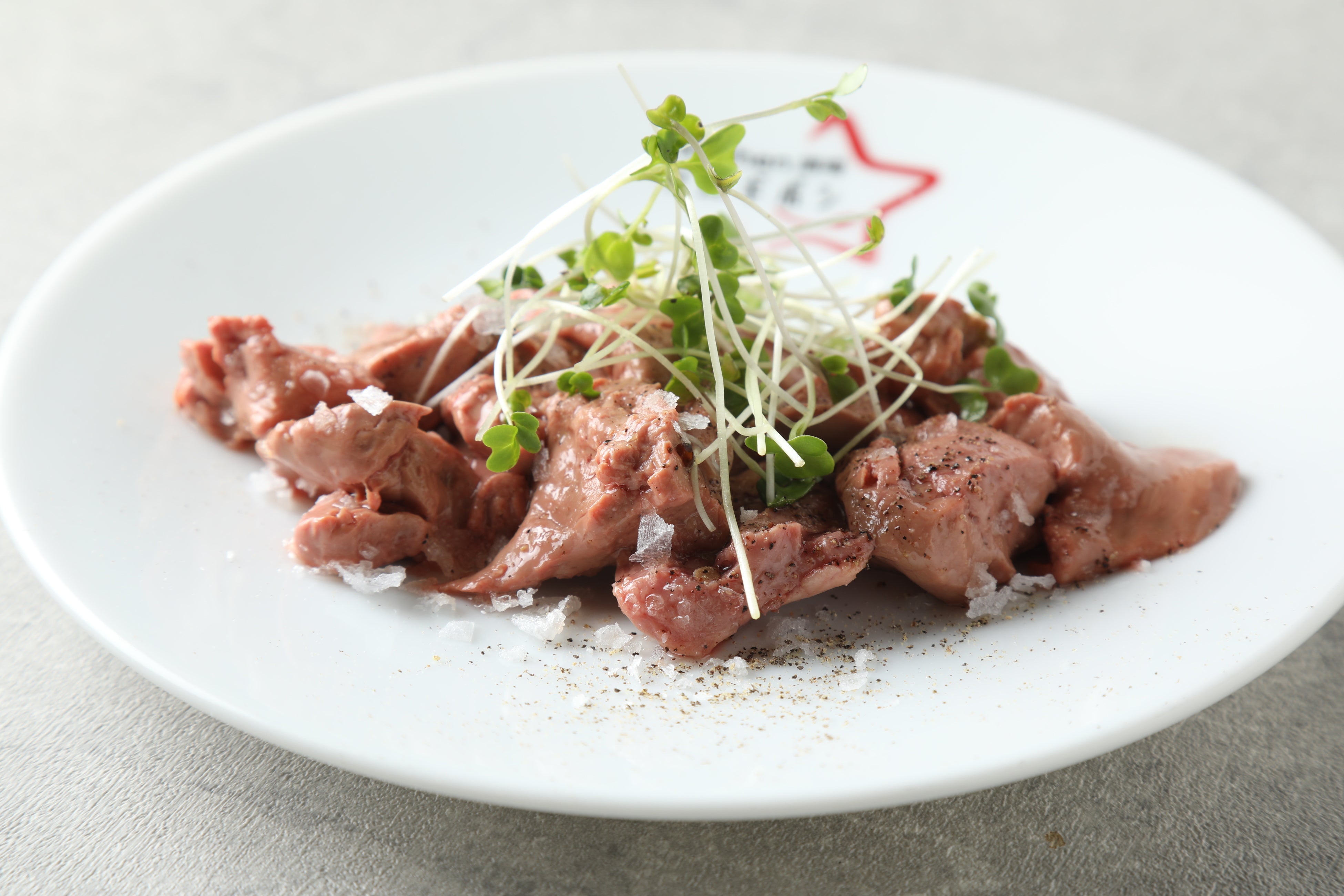 低温調理された鶏のレバーを2種類のこだわり塩と太白ごま油で仕上げたシンプルなおつまみ。炙った香ばしさとねっとりした舌触りがおつまみに最適です。500円(税込み550円)