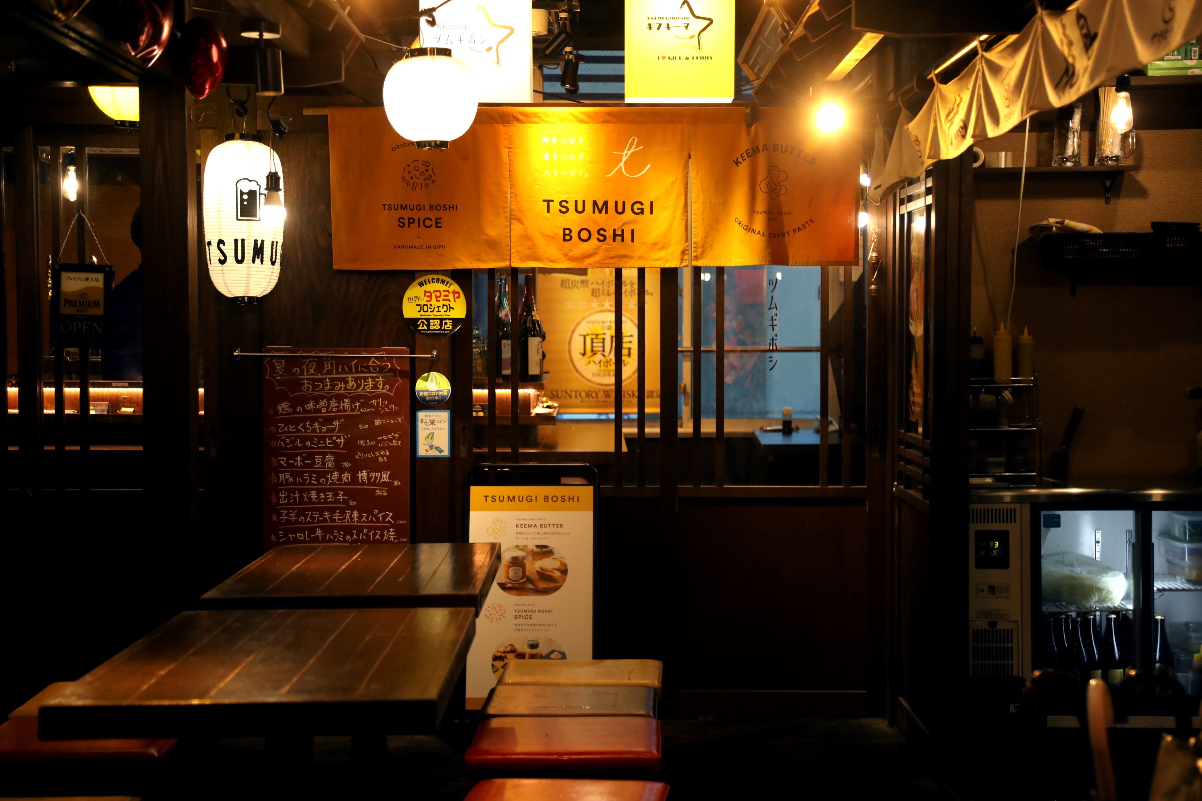 玉宮地区の中でも一際目立つ岐阜横丁ビルの2階にひっそり佇むツムギボシ。立地が良くて落ち着いて飲みたい方には特におすすめです。