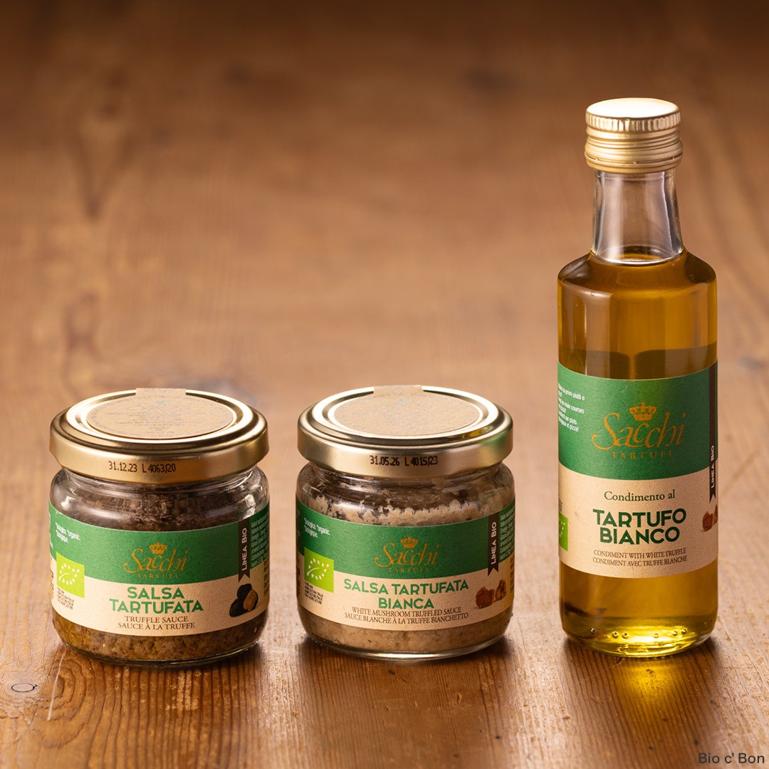 加熱に弱く保存に気をつかうビアンケット(=春トリュフ)が入ったソースと白トリュフ入りのオイルは、そのままかけてお召し上がりいただけるため特におすすめの逸品です!また、日本でなじみのあるサマートリュフ入りのソースもこのたび調達しています。