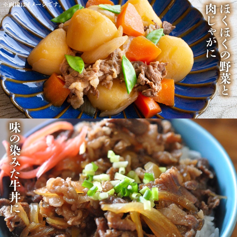 500g×2パックの小分けで保存にも便利!すき焼き・牛丼・ペッパーライスなど、ご家庭での多彩な料理にお使いいただけます。