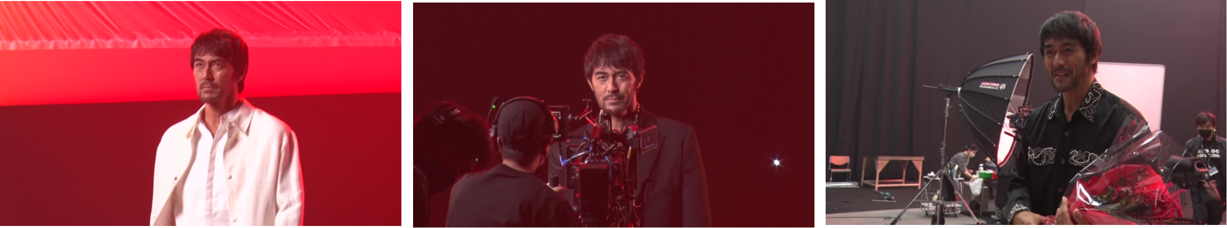 撮影当日、阿部寛さんはシャープなシルエットの白い衣装を身にまとい、撮影現場に登場。今回の撮影の多くが、赤いライトに照らされた、黒いセットの中で行われました。モニターを真剣な表情で確認する阿部さん。撮影中は声のトーンや表情、動きについて監督と入念な確認を行っていました。ひとたび撮影が始まると、阿部さんは今回の「目の前のことに全力で挑み続ける男」という役柄に集中し、制作スタッフ一同思わず引き込まれるほどの圧倒的な存在感を放っていました。特に、ランウェイを歩くシーンでは衣装チェンジを複数回行いつつの撮影となりましたが、それぞれの衣装によって表情や歩くスピードを変えるなど、セリフはなくても思いが伝わるその演技力は印象的で、今回「Cook Do®」がこだわり抜いて開発した新商品のコンセプトをまさに体現していました。