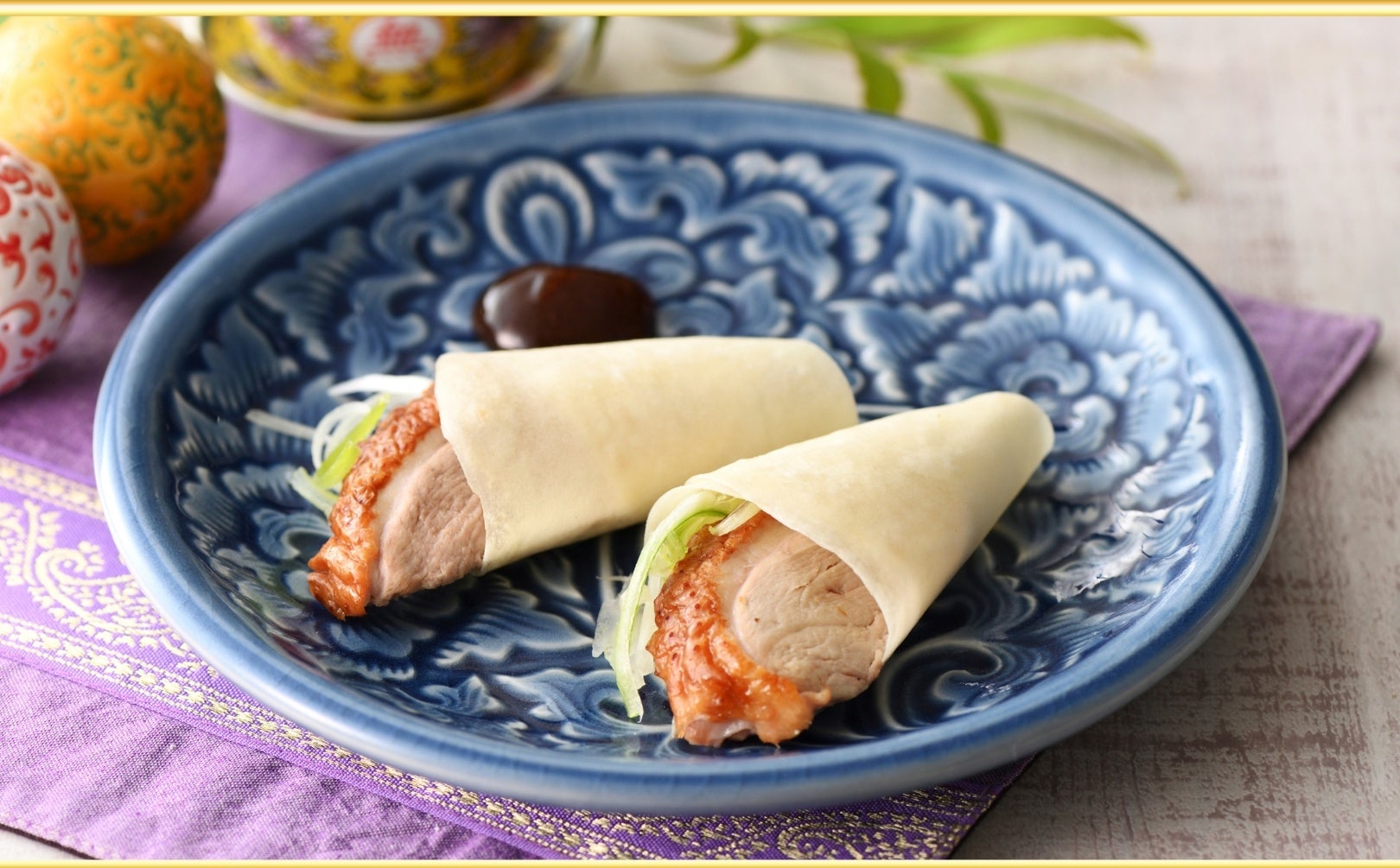 モチモチのパオピンに包まれた肉厚ジューシーな『北京ダック』。もちろん食べ放題でご堪能いただけます!