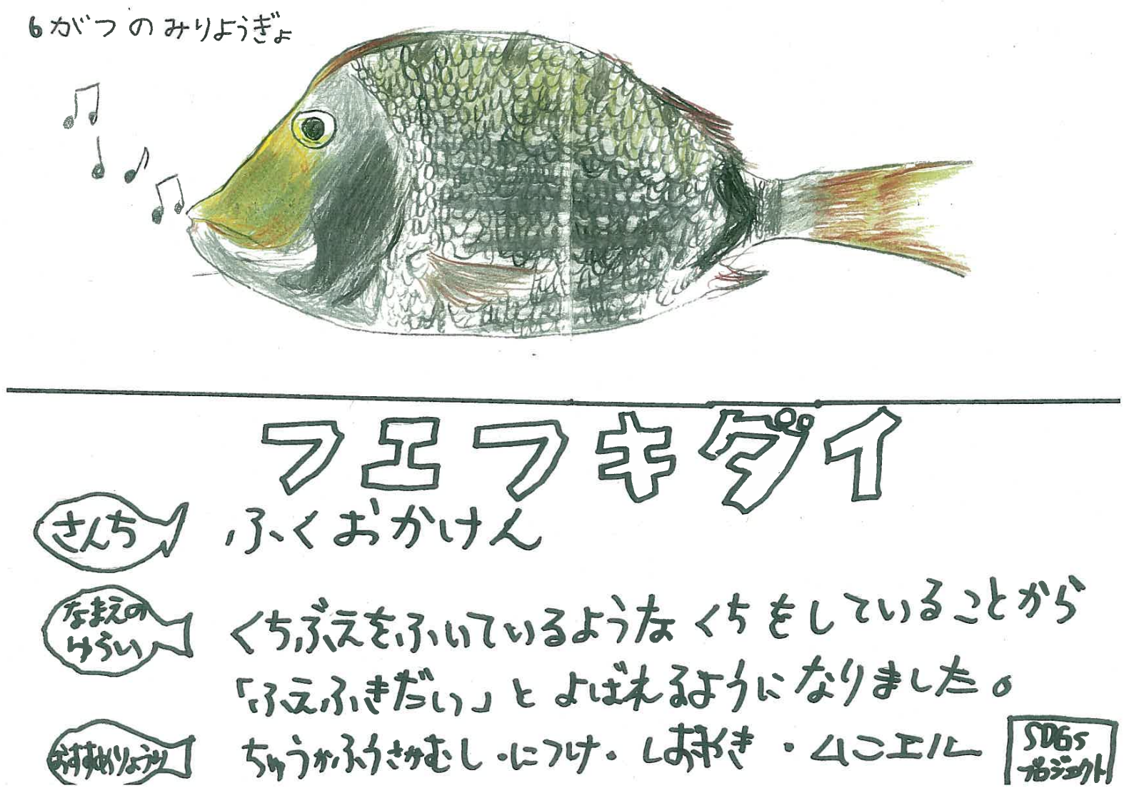 (青山学院初等部 SDGsプロジェクト生徒によるフエフキダイの絵)