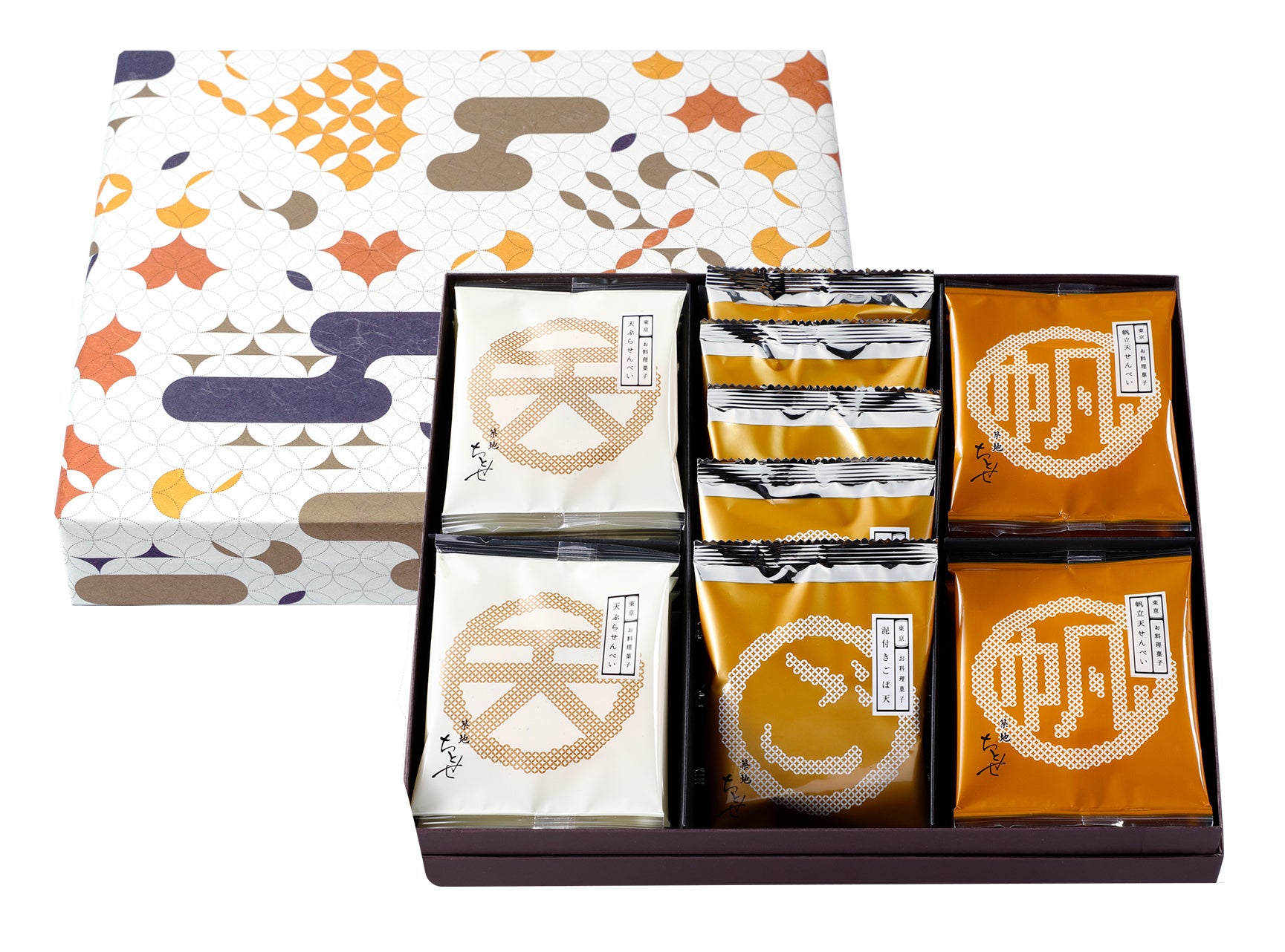 定番人気の「天ぷらせんべい」や「泥付きごぼう天せんべい」との詰め合わせもご用意しております。口に入れた瞬間に広がる帆立の旨味!一度食べたら止まらなくなる「帆立天せんべい」を、お酒のおつまみや、お茶の時間のお供として是非、お楽しみくださいませ。
