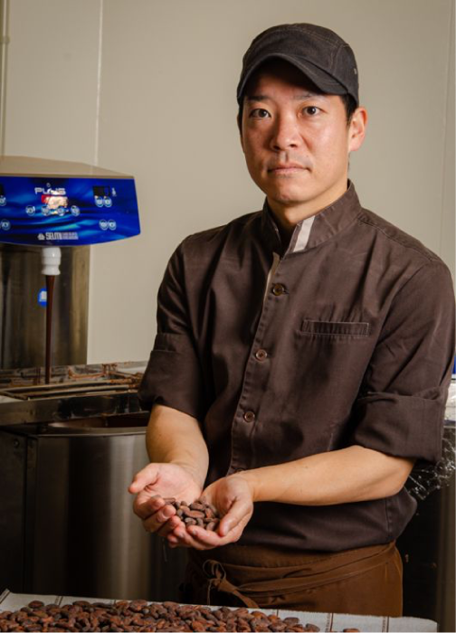 Normandie Chocolat ショコラティエ 横田 恭平シェフよりのコメント カカオから出る大量の廃材を活用できないかと感じる中で、SDGsの流れもありサステナブルなことをしたいと感じていました。弊社ではチョコレートの他にクラフトビールを先駆けで提供してきた土壌があり、Bean to Barとして静岡県東部では先駆けて提供して来ています。その中でより環境に配慮した取り組みができればと思っていた時に、ソーイ様の「UP0TECH®」がカカオを余すところなく利用する循環システムの構築の一歩となると感じ導入しました。