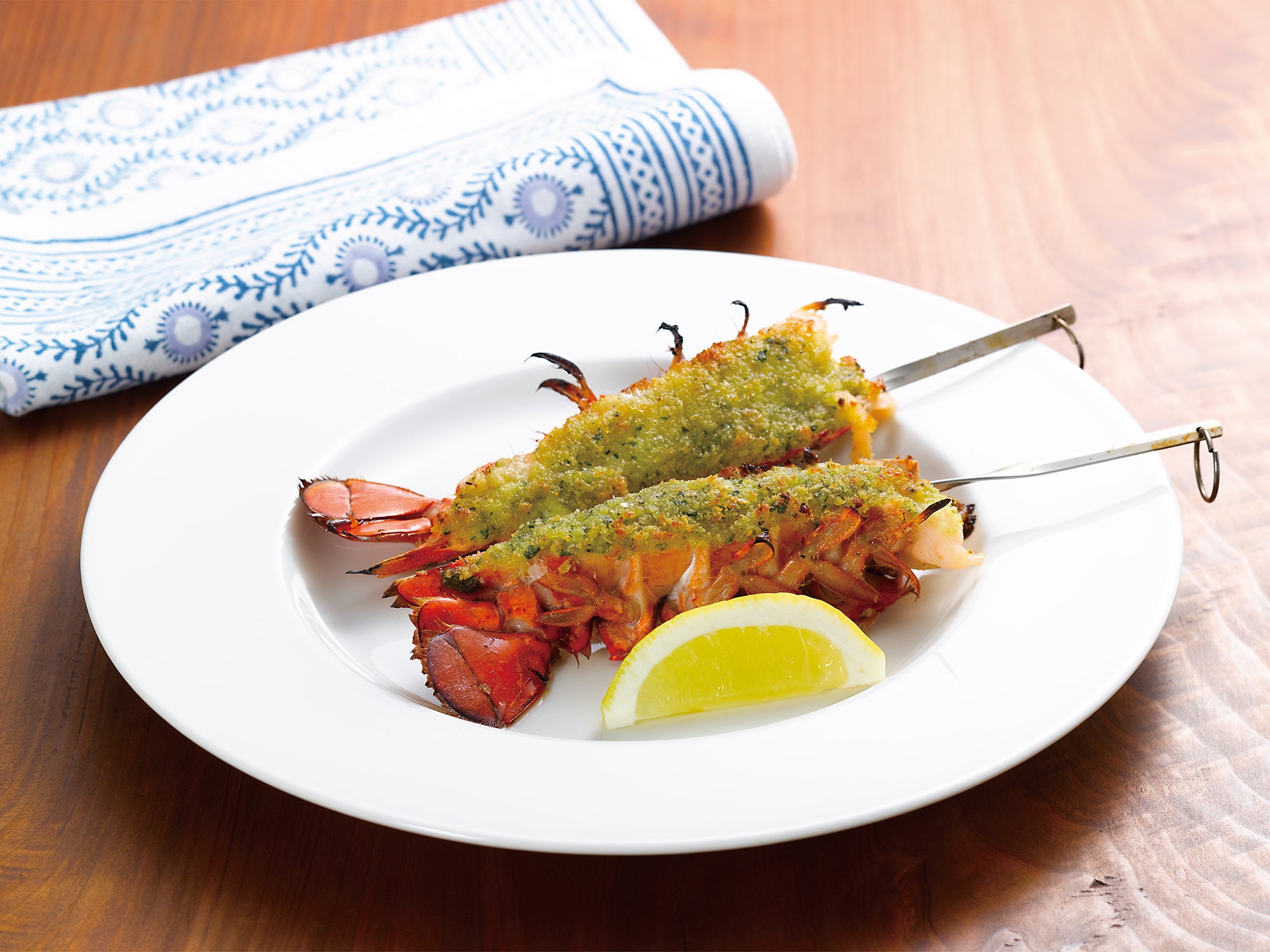 殻付のオマール海老にチーズ、ハーブ(バジル)、ガーリックオイルを合わせたパン粉をまぶし、オーブンで焼き上げました。バジルとチーズ、ガーリックの香ばしい香りが美味しさを際立たせます。また、レモンを絞れば爽やかでさっぱりとした味の変化もお楽しみいただけます。