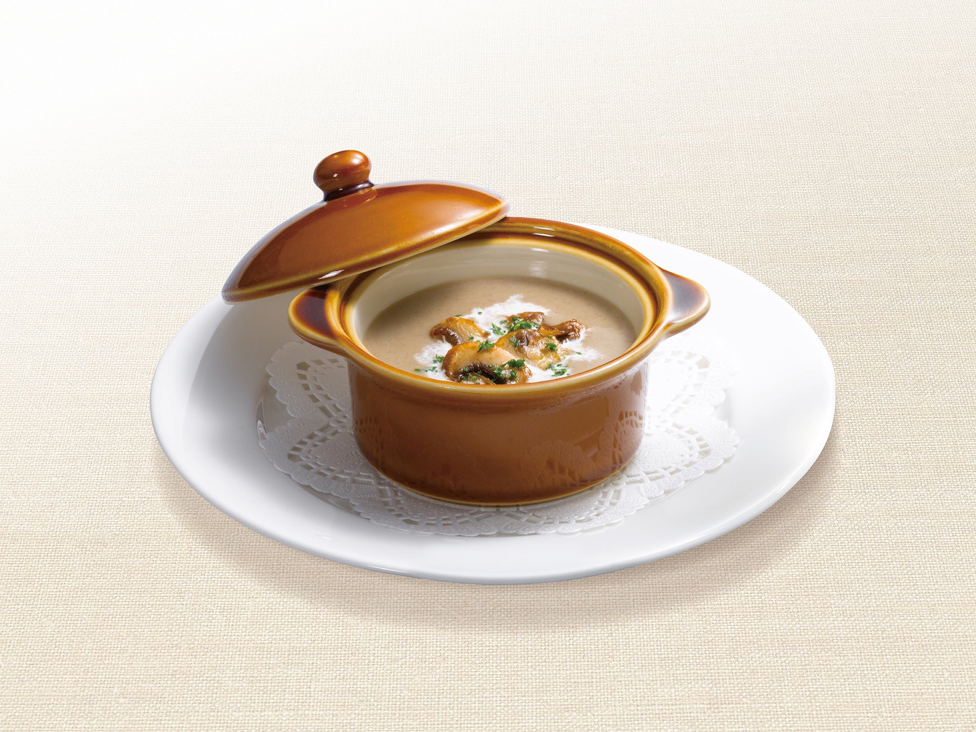 マッシュルームの香りと旨みが口の中で広がるクリーミーなスープです。バターソテーしたマッシュルームを仕上げに浮かべることで芳醇な香りだちが食欲をそそります。