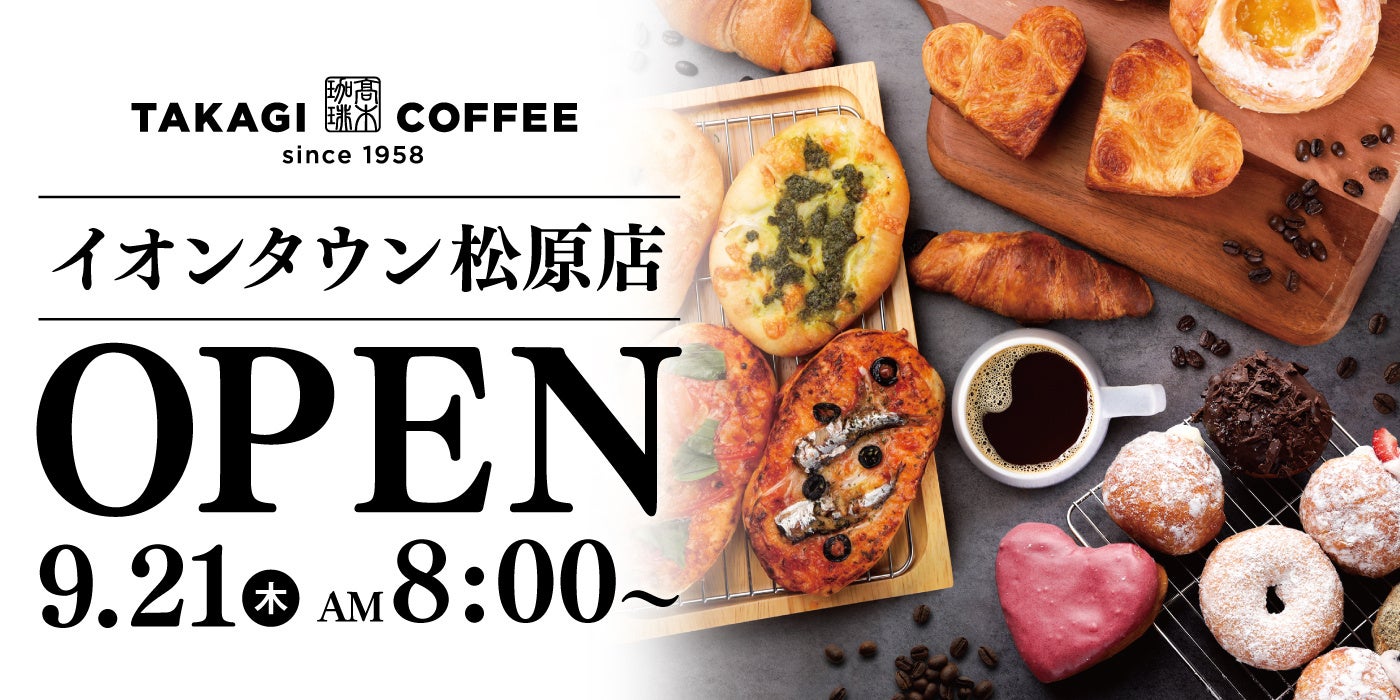 株式会社サンパークは、9月21日(木)イオンタウン松原に「髙木珈琲 イオンタウン松原店」をオープンいたします。