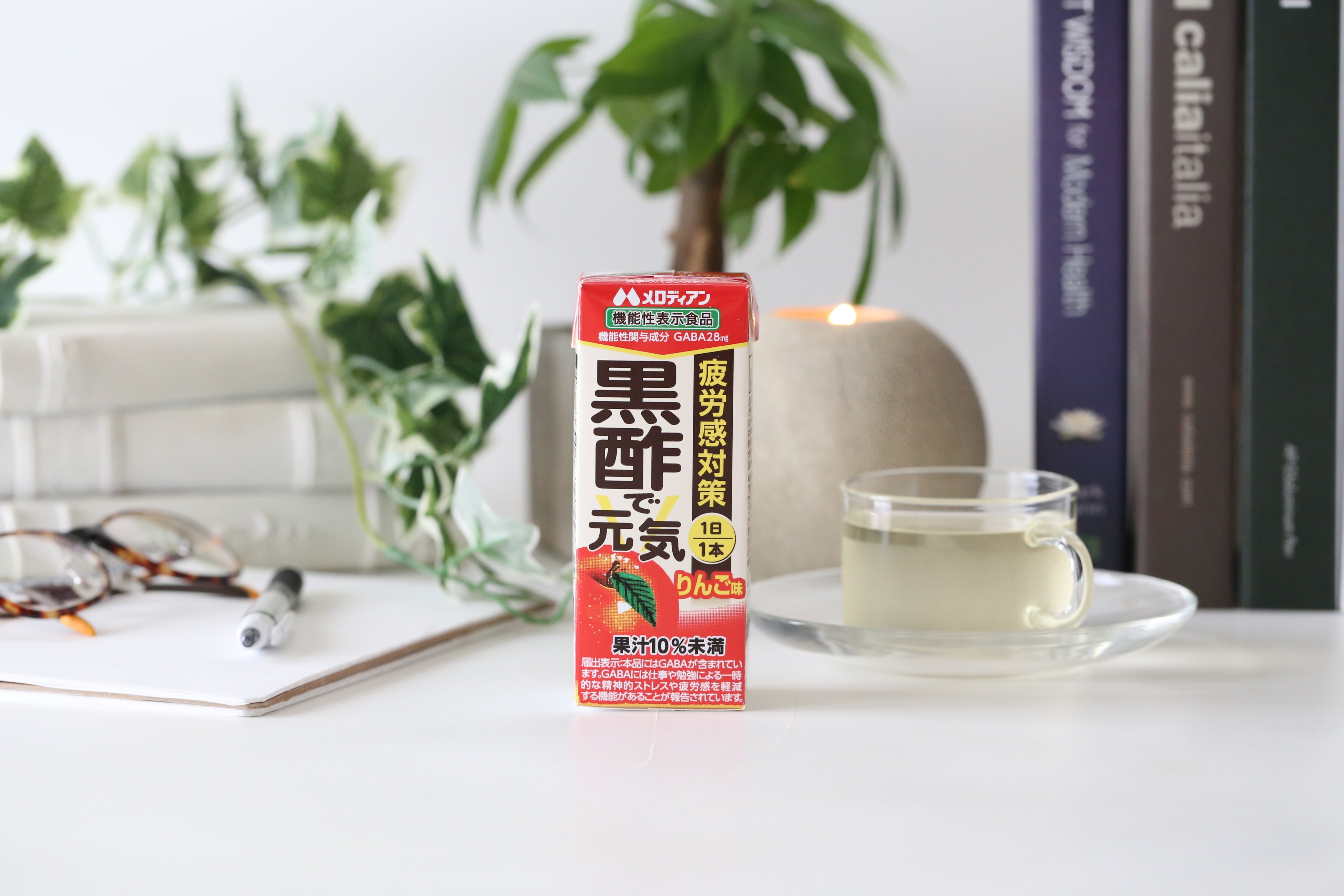 黒酢で元気は2000年の発売以降、長期間に渡って多くの皆様にご支持いただいている商品です。この度、更に多くの皆様に飲んでいただけるよう、GABAを配合し機能性表示食品としてリニューアル致しました。GABAは、仕事や勉強による一時的な精神的ストレスや疲労感を軽減する機能があることが報告されています。仕事や勉強が忙しくストレスを感じる方など、日々のストレスケアが必要な忙しい現代人の、疲労感対策にぴったりの商品です。2種類の容量タイプがあるので、仕事中や休憩中、寝る前のリラックスタイムなど様々なシーンに合わせてお飲みいただけます。
