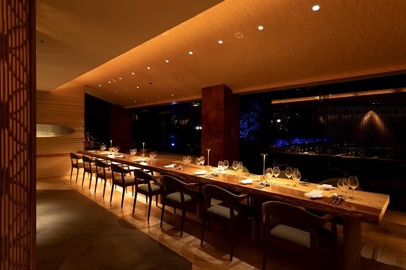 会場は、今年創業80周年を迎えた八芳園のRESTAURANT ENJYU。全9皿のコースは、和・洋・中などのジャンルにとらわれず、職人の技と旬の素材の味わいをいかした繊細でイノベーティブなお料理。幻想的にライトアップされた緑豊かな庭園を望む洗練された空間で、日本各地の美味しい食材をご提供いたします。今回のメインの食材は、京都の七谷鴨。ブルゴーニュのワインとの相性は言うまでもありません。